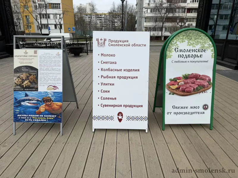 На ярмарке представлено более 15 фермерских хозяйств из Смоленской области. Их ассортимент — настоящий гастрономический гид по региону: несколько видов пельменей ручной лепки, натуральная ряженка, крафтовые сыры с местными травами, мясные деликатесы и котлеты «как у бабушки». Особой популярностью пользуются крапивинские соленья — бочковые огурцы и капуста. А самым неожиданным товаром на ярмарке стали деликатесные виноградные улитки, которых выращивают и поставляют фермеры из города Гагарин. Дополняют ассортимент натуральные соки и мед с пасек Смоленщины.