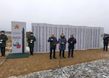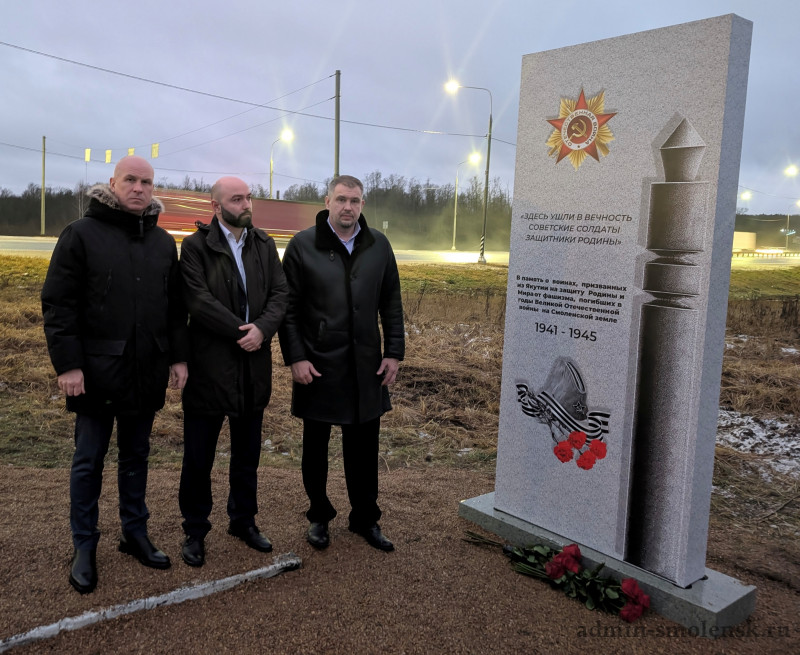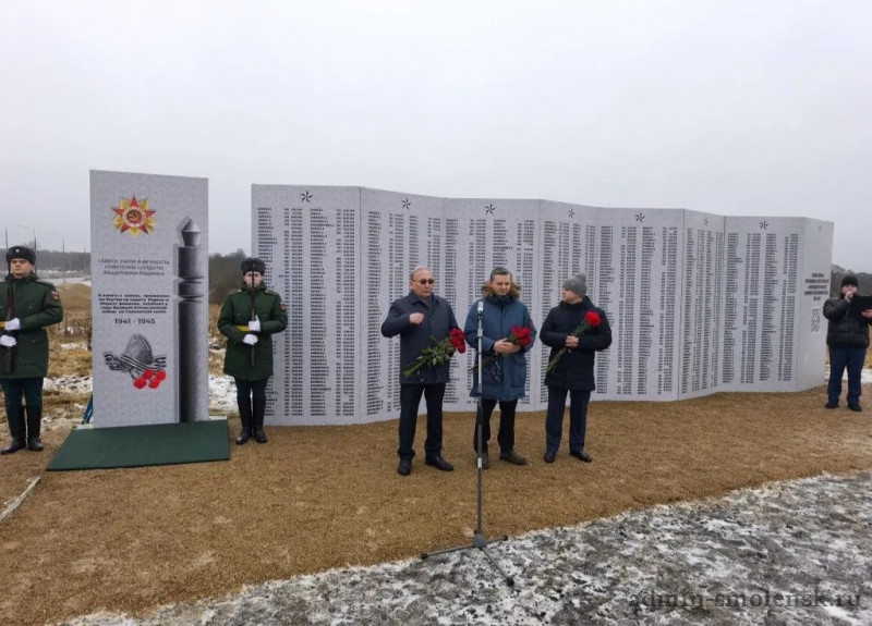 На территории мемориала воинам 365-го стрелкового полка вблизи города Гагарина Смоленской области, заместитель председателя Правительства Смоленской области Алексей Гусев и глава Гагаринского района Владимир Грунин, совместно с Постоянным представителем Республики Саха (Якутия) при Президенте Российской Федерации Андреем Федотовым провели торжественную церемонию открытия мемориала воинам-якутянам, возведенного в рамках проекта "Бастионы памяти".